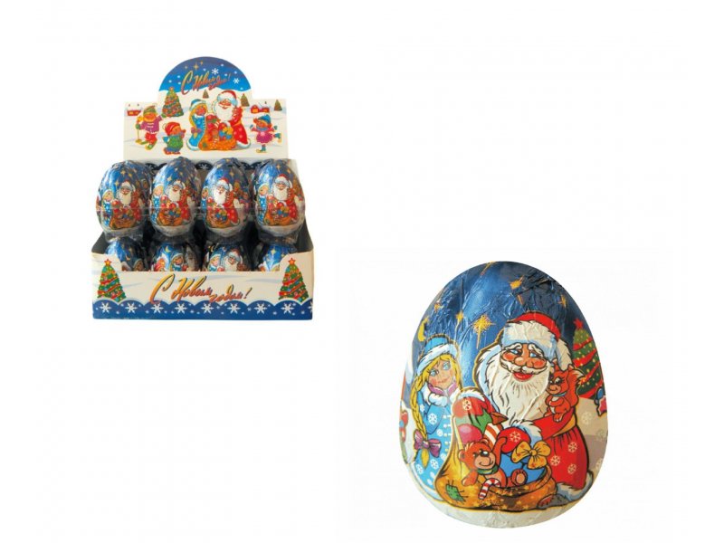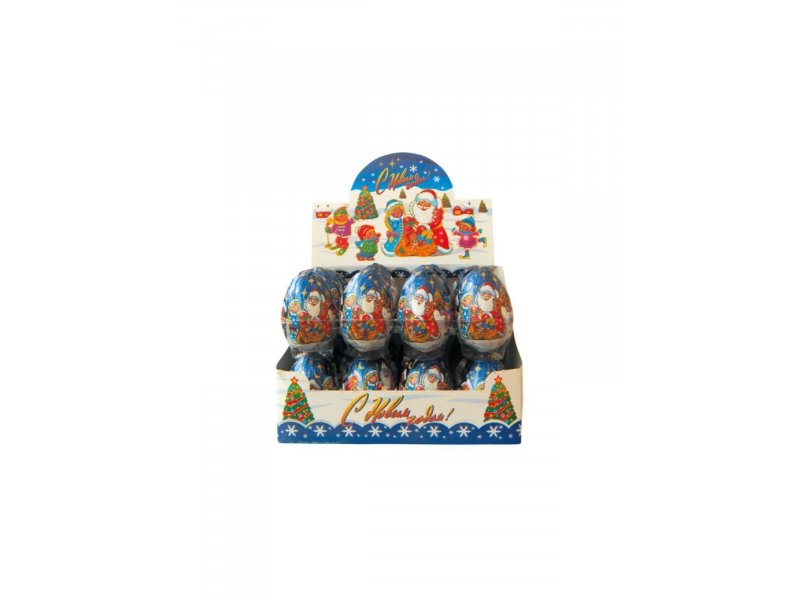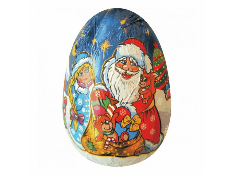 Яйцо шоколадное из кондитерской глазури "Новогодняя сказка" с сюрпризом сочетает в себе два вида подарков - сладкий десерт и игрушку-сюрприз.