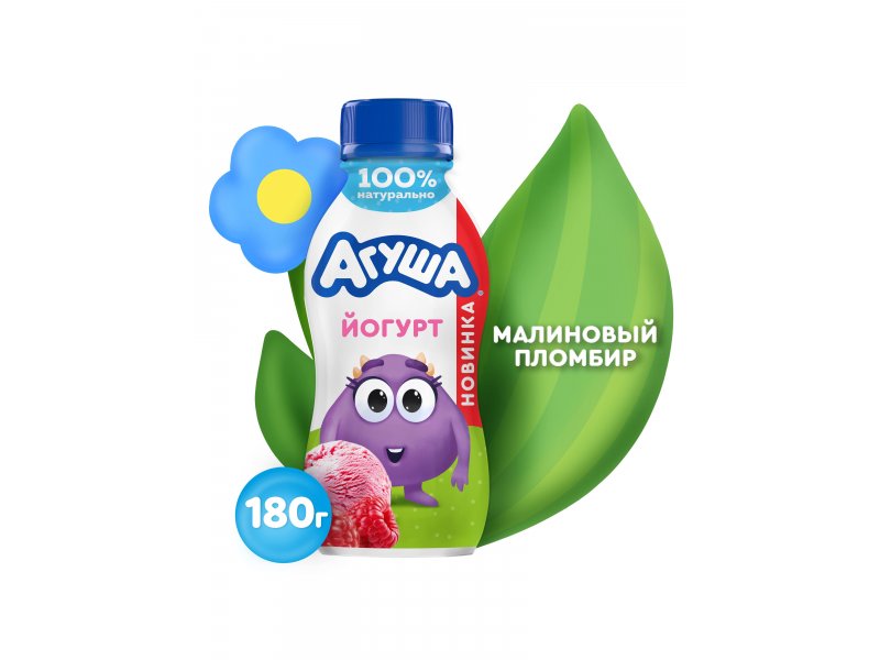 Новинка питьевой йогурт от Агуши вкус «Малиновый пломбир» - это 100% натуральный десерт, созданный специально для подросших малышей, который содержит пробиотик для пищеварения.