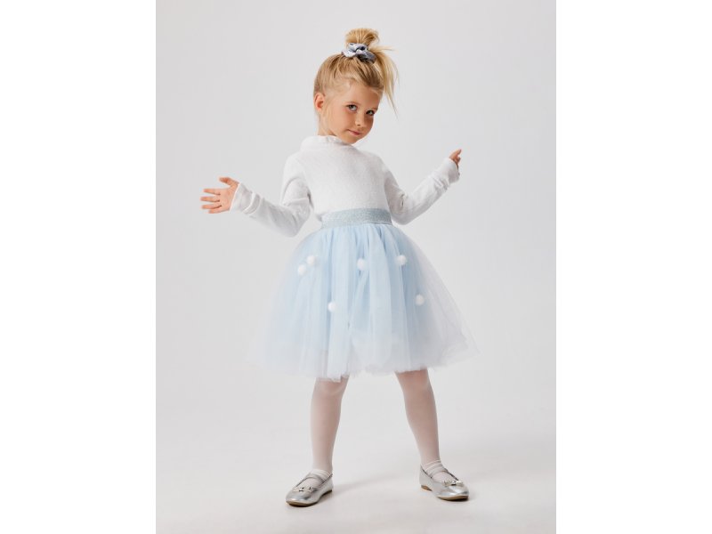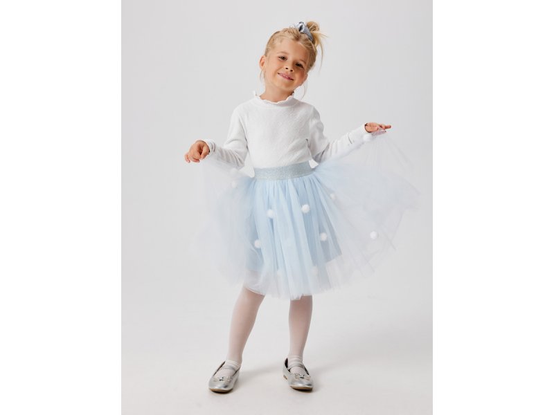 Детская праздничная юбка для девочки – это стильный выбор для создания образа на утренники, новогодние вечеринки или торжественные события. Модель выполнена из трикотажного полотна с сеткой, что придает изделию оригинальный и интересный вид. Мягкая подкладка обеспечивает комфортное ношение. Пояс на эластичной резинке декорирован люрексом, что придает изделию блеск и изящество. Пышная юбка со сборками добавляет аутфиту легкости и воздушности. Декоративные помпоны делают модель более праздничной и привлекательной.