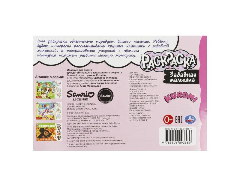 Забавная малышка. Куроми. Раскраска. 210х140 мм. Скрепка. 8 стр. Умка в кор.100шт