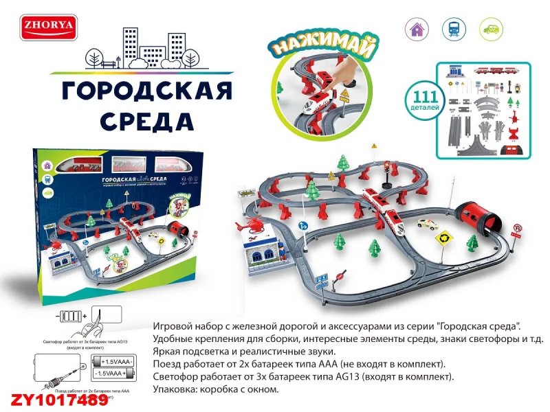 Железная дорога Zhorya Городская среда на батарейках, 111 деталей