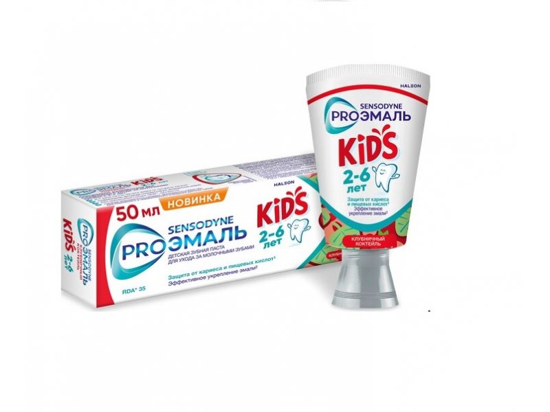 Зубная паста Sensodyne Proэмаль Kids обладает низкой абразивностью (индекс абразивности RDA 35) для бережного и эффективного очищения детских зубов.