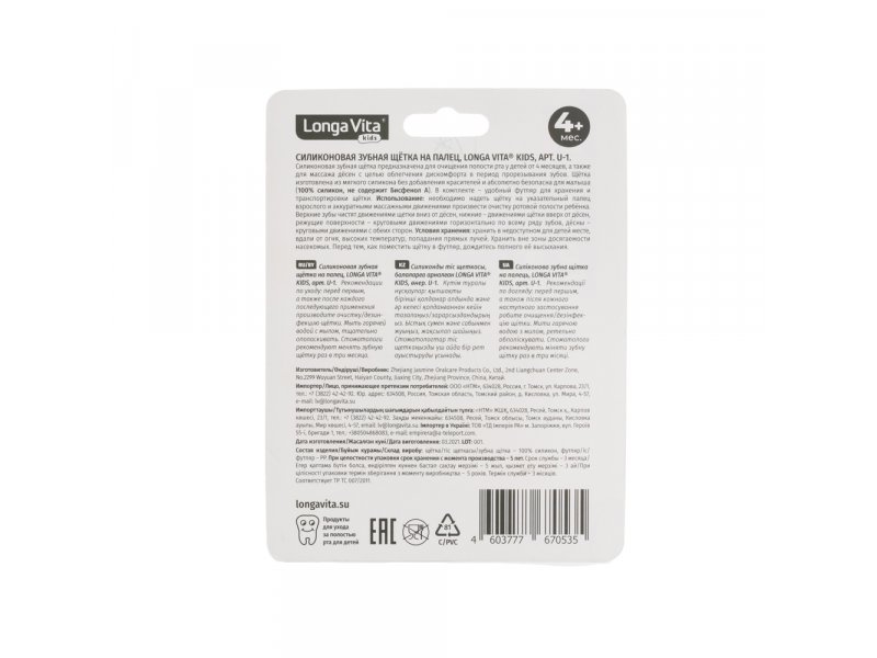 Зубная щетка Longa Vita Силиконовая на палец