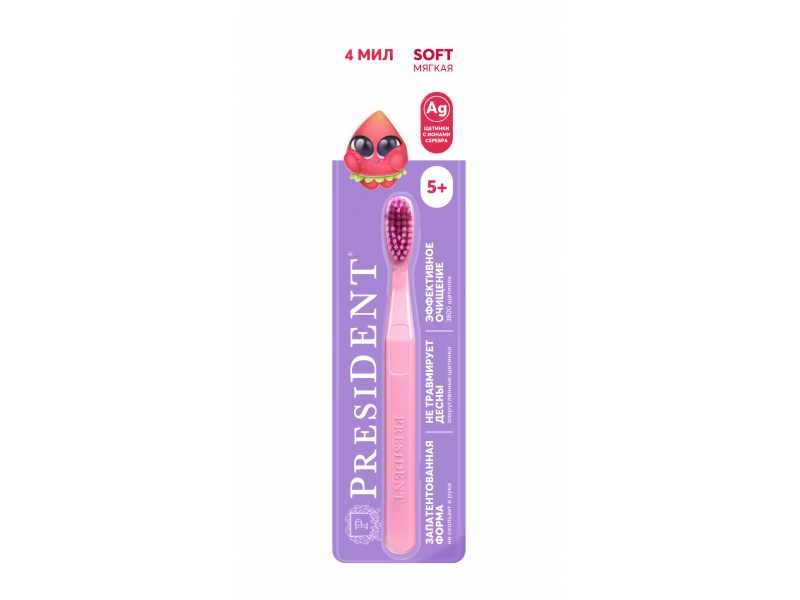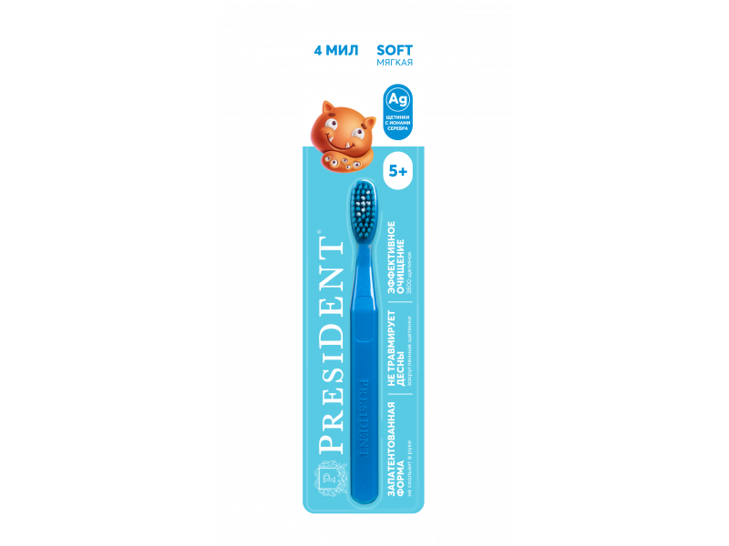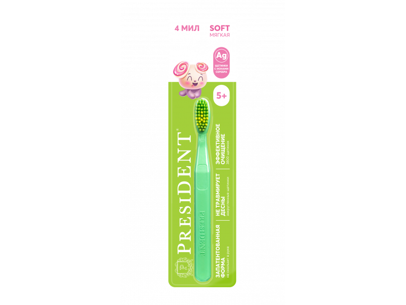 Мягкая зубная щетка President ® для детей от 5-ти лет.